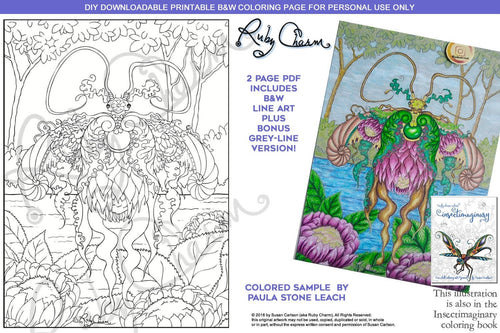 Insectimaginary Suvi Beetle: downloadable printable 2-page DPF for coloring
