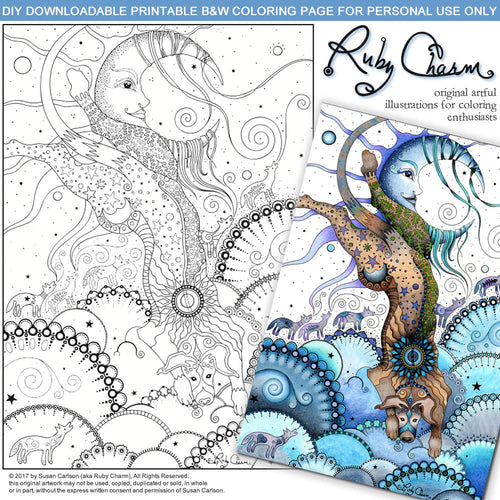 Unique illustrations by coloring book artist Susan Carlson are available as downloadable, printable PDFs for your coloring enjoyment