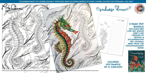 Oceanimaginary Seahorse Deuce: downloadable 3-page PDF for coloring