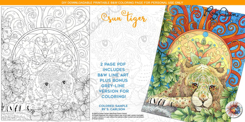 Sun Tiger: downloadable printable 2-page PDF for coloring