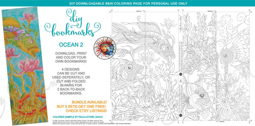 DIY Bookmarks - Ocean 2: downloadable printable 1-page PDF for coloring