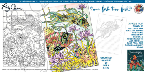 Oceanimaginary One Fish Two Fish: downloadable printable 3-page PDF for coloring