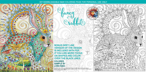 Fancy Rabbit: downloadable printable 2-page PDF for coloring