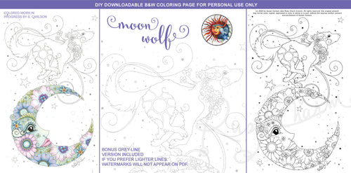 Moon Wolf: downloadable printable 2-page PDF for coloring