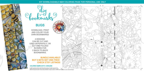 DIY Printable Bookmarks - INSECTS: downloadable printable 1-page PDF for coloring