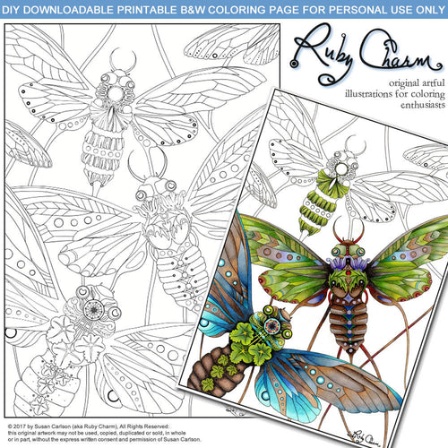 Unique illustrations by coloring book artist Susan Carlson are available as downloadable, printable PDFs for your coloring enjoyment