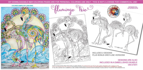 Flamingo Trio: downloadable printable 4-page PDF for coloring
