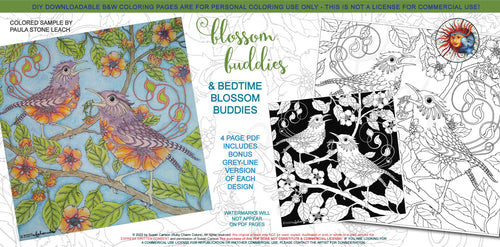 Blossom Buddies & Bedtime Blossom Buddies: downloadable printable 4-page PDF for coloring