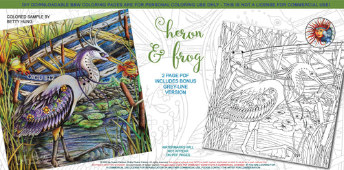 Heron & Frog: downloadable printable 2-page PDF for coloring
