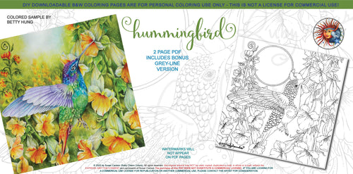 Hummingbird: downloadable printable 2-page PDF for coloring
