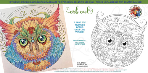 Owl Orb: downloadable printable 2-page PDF for coloring