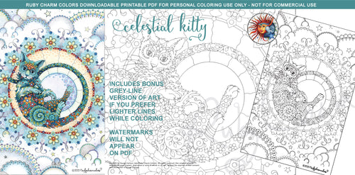 Celestial Kitty: downloadable printable 2-page PDF for coloring