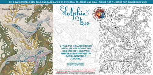 Dolphin Trio: downloadable printable 2-page PDF for coloring