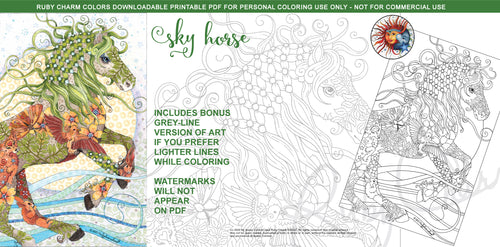 Sky Horse: downloadable printable 2-page PDF for coloring