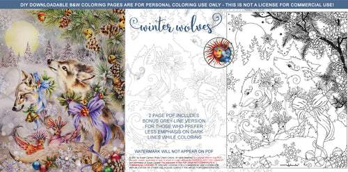 Winter Wolves: downloadable printable 2-page PDF for coloring