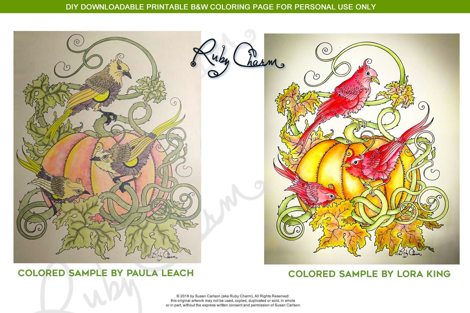 IMPORTANT LEGALESE ….. Please respect the time and effort that went into creating these illustrations (all of the art is copyrighted) and do not share or sell the PDF file and do not sell printed copies, or use the image commercially. This coloring page is for your PERSONAL USE AND ENJOYMENT. Selling any and all items using this image is prohibited. You are not permitted to send the files to other people or sell/trade/give them away. Please do not post this image online without your coloring it first. If you want to share your colored creation online, PLEASE DO! But please credit #RubyCharmColors (Susan Carlson) as the artist of the original illustration in addition to yourself as the colorist. The artist retains all copyright protections, rights, and privileges. Thank you for understanding and for supporting an independent artist!