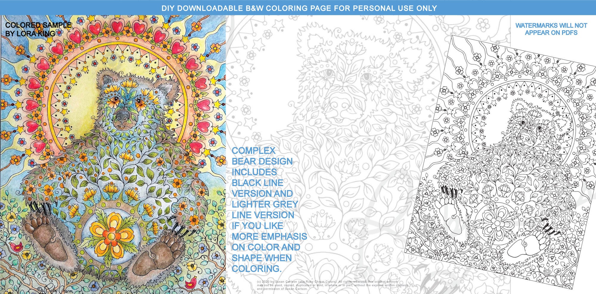 BONUS: This 4-page PDF includes a black line design as well as a lighter grey line version which can be helpful if you like to work with watercolors, or simply want more emphasis on your shapes and colors instead of the traditional dark black lines. The choice is yours!