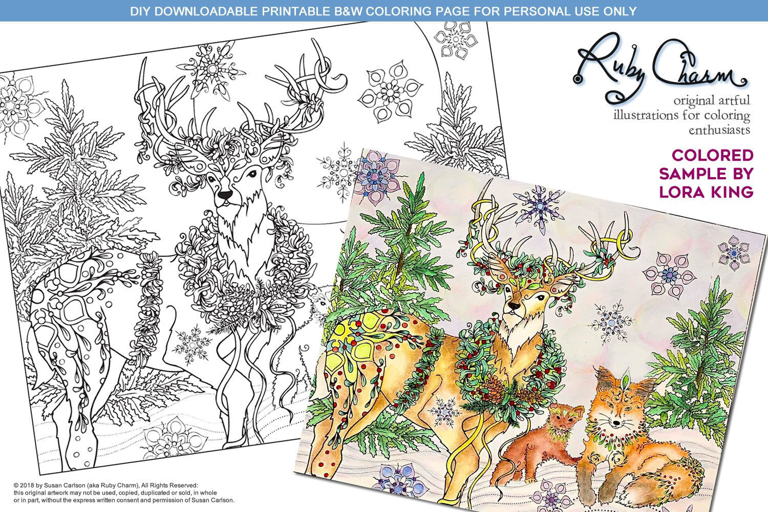 Holiday Deer Mink and Fox: downloadable printable 2-page PDF for coloring