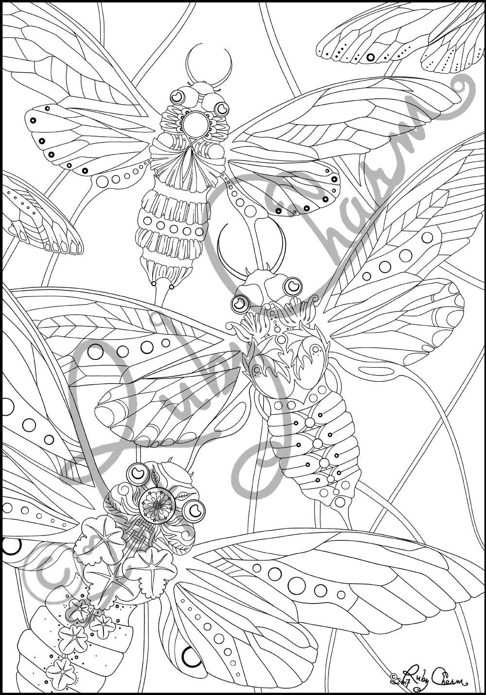 • Load image into Gallery viewer, Cicadas: downloadable printable 2-page PDF for coloring