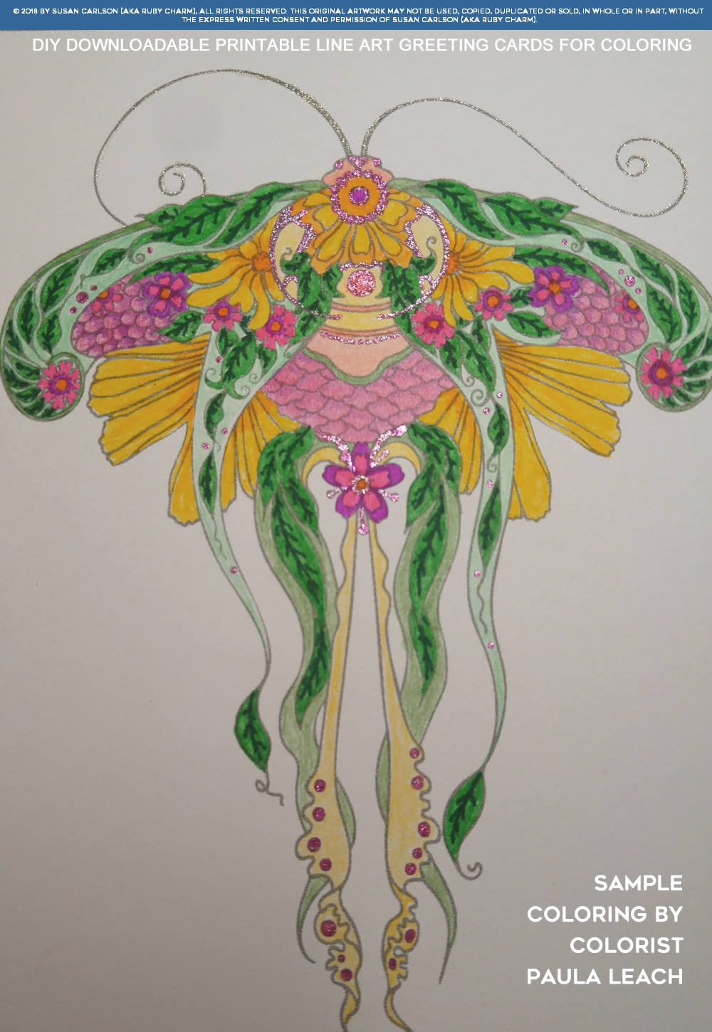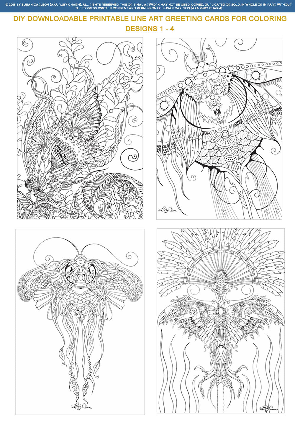 IMPORTANT LEGALESE ….. Please respect the time and effort that went into creating these illustrations (all of the art is copyrighted) and do not share or sell the PDF file and do not sell printed copies, or use the image commercially. This coloring page is for your PERSONAL USE AND ENJOYMENT. Selling any and all items using this image is prohibited. You are not permitted to send the files to other people or sell/trade/give them away. Please do not post this image online without your coloring it first. If you want to share your colored creation online, PLEASE DO! But please credit #RubyCharmColors (Susan Carlson) as the artist of the original illustration in addition to yourself as the colorist. The artist retains all copyright protections, rights, and privileges. Thank you for understanding and for supporting an independent artist!