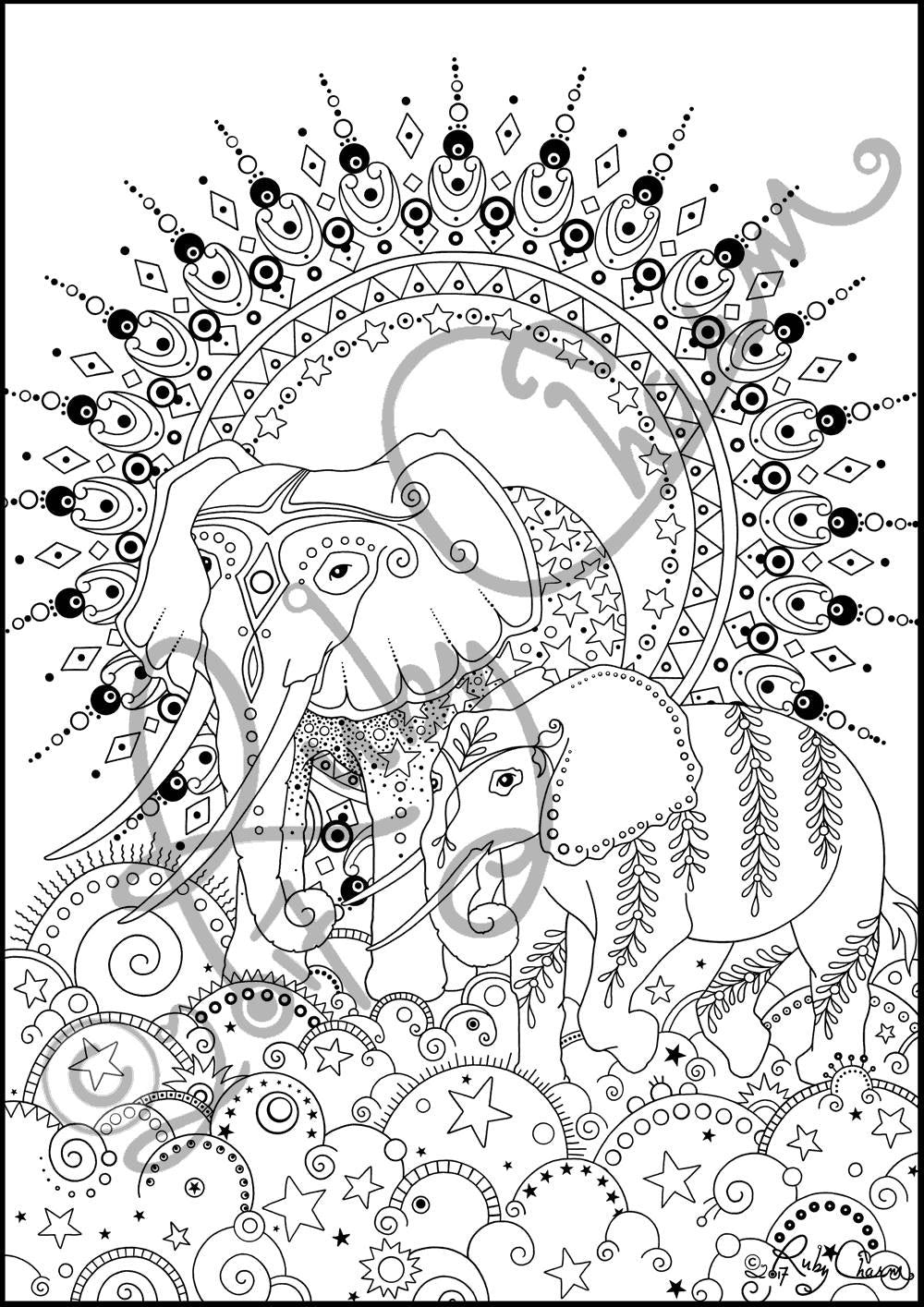 • Load image into Gallery viewer, Elephants: downloadable printable 2-page PDF for coloring