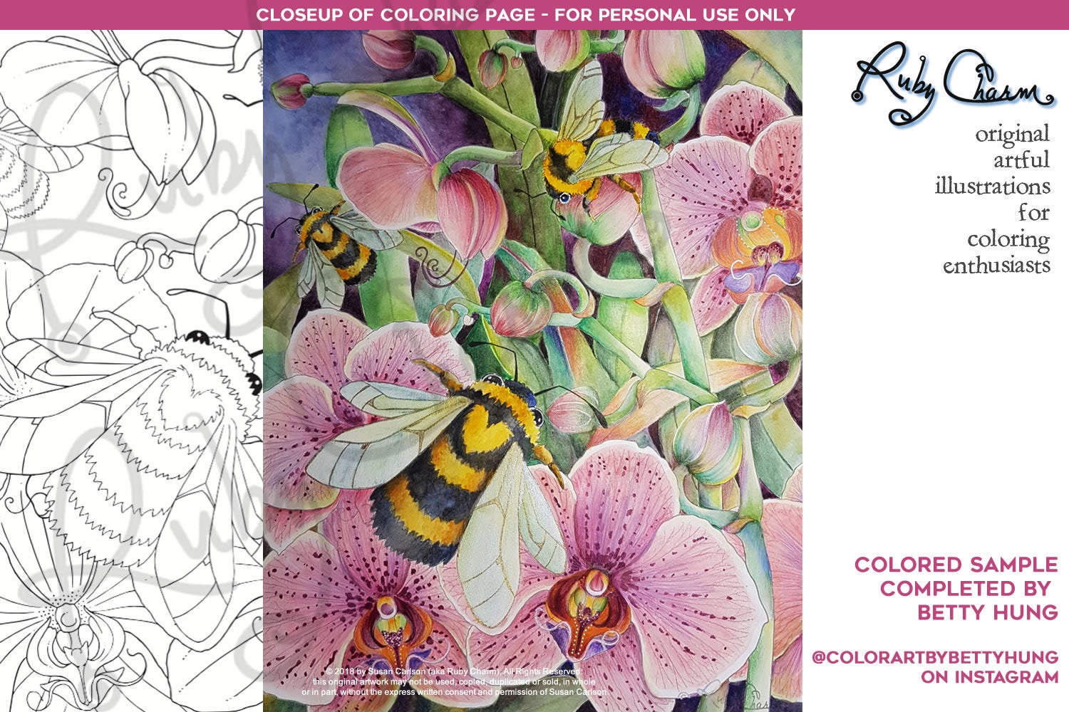 • Load image into Gallery viewer, Insectimaginary Orchid Bumbles: downloadable printable 2-page PDF for coloring