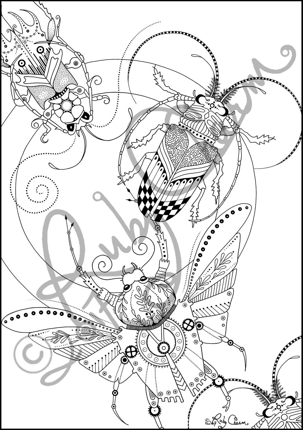 • Load image into Gallery viewer, 3 Insects: downloadable printable 2-page PDF for coloring