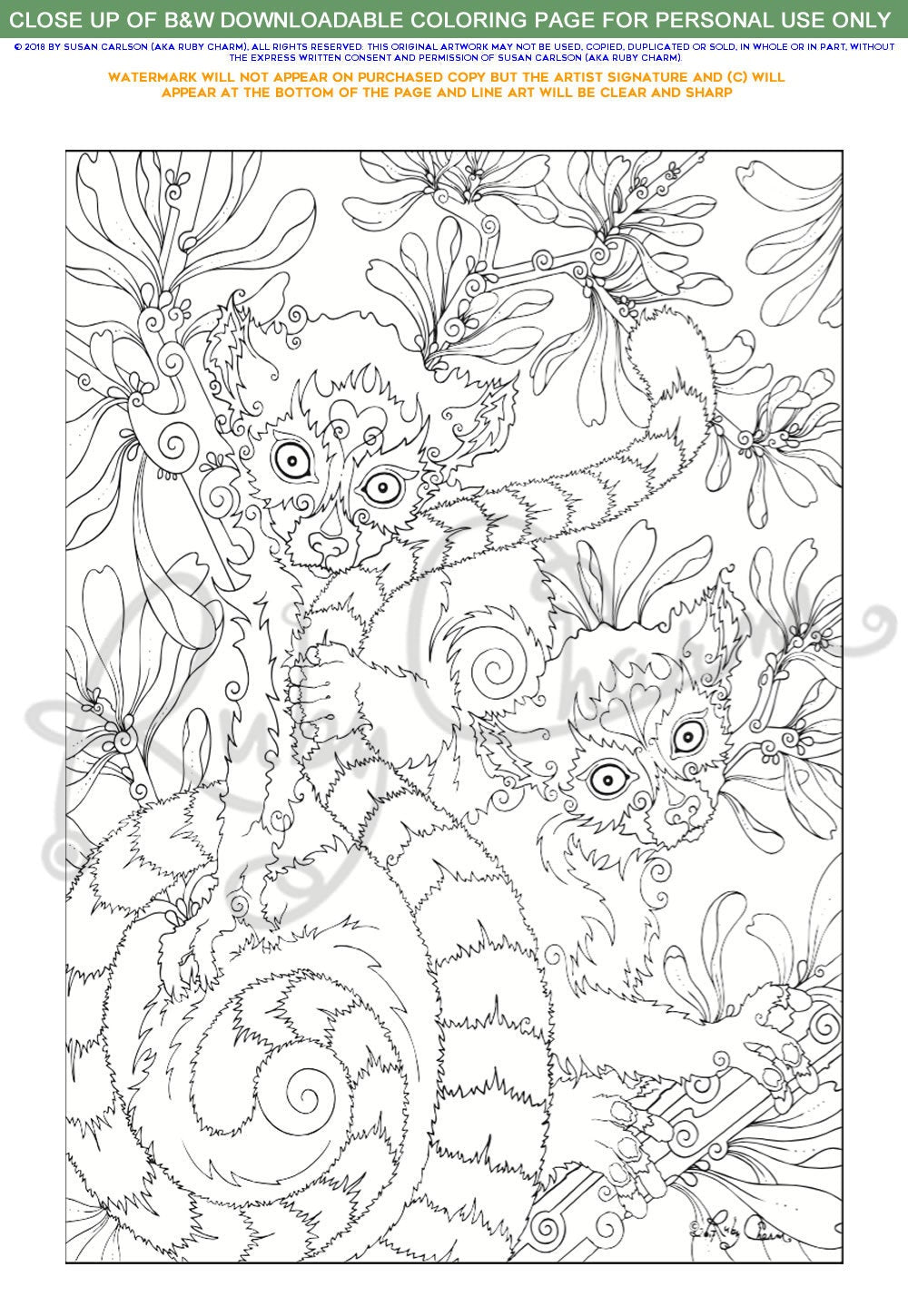 BONUS: This 2-page PDF includes a black line lemur design as well as a lighter grey line version which can be helpful if you like to work with watercolors, or simply want more emphasis on your shapes and colors instead of the traditional dark black lines. The choice is yours!