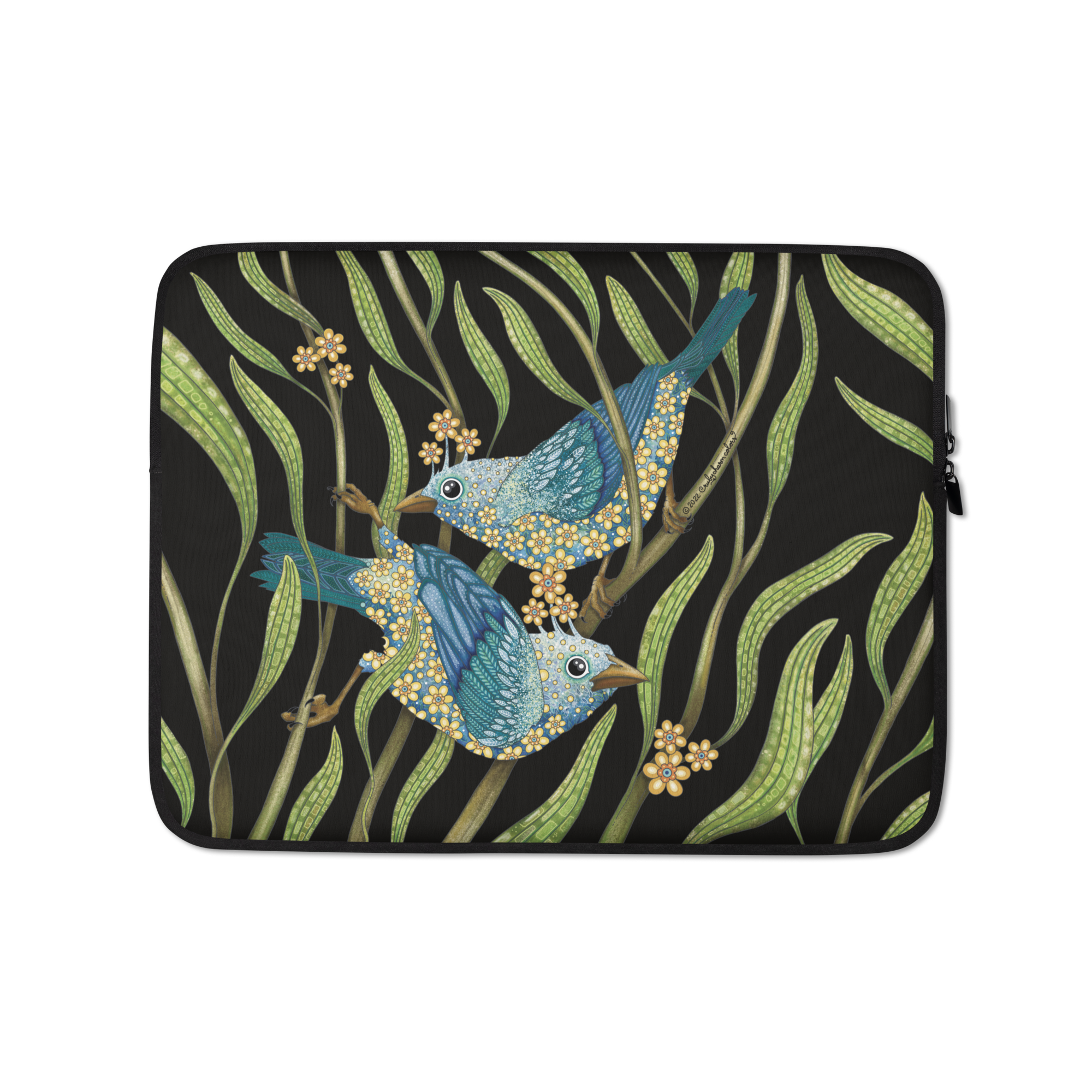 Protect your laptop, tablet or eReader in style—get this snug, lightweight case featuring the Prairie Birds artwork on a black background by Ruby Charm Colors.