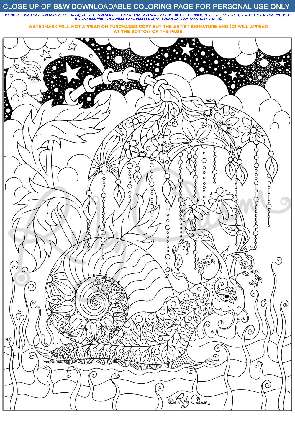 IMPORTANT LEGALESE ….. Please respect the time and effort that went into creating these illustrations (all of the art is copyrighted) and do not share or sell the PDF file and do not sell printed copies, or use the image commercially. This coloring page is for your PERSONAL USE AND ENJOYMENT. Selling any and all items using this image is prohibited. You are not permitted to send the files to other people or sell/trade/give them away. Please do not post this image online without your coloring it first. If you want to share your colored creation online, PLEASE DO! But please credit #RubyCharmColors (Susan Carlson) as the artist of the original illustration in addition to yourself as the colorist. The artist retains all copyright protections, rights, and privileges. Thank you for understanding and for supporting an independent artist!